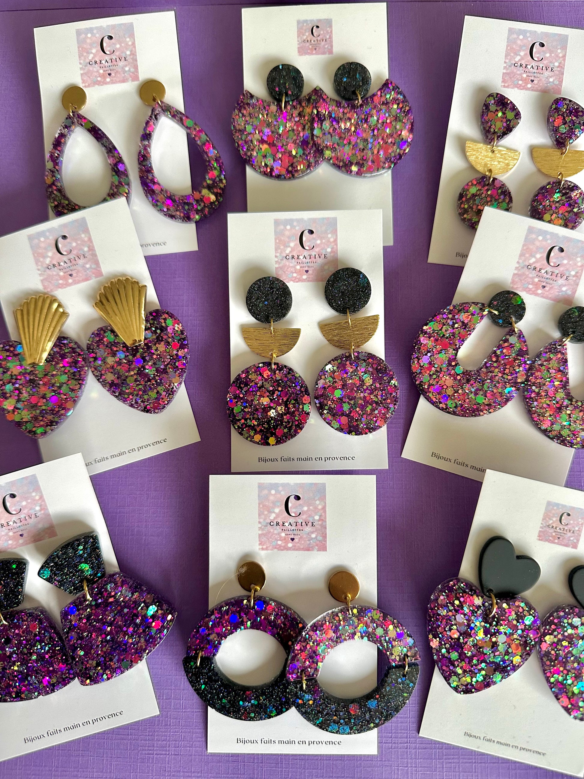 Craquez pour nos boucles d'oreilles Goutte Éclat ! Chaque pièce est une véritable célébration de couleurs. Les paillettes multicolores (rose fuchsia, violet, turquoise, or) sont délicatement emprisonnées dans une résine de qualité supérieure, créant un effet kaléidoscope hypnotisant. L'attache dorée apporte une touche d'élégance intemporelle. Parfaites pour les occasions spéciales ou pour illuminer votre quotidien.